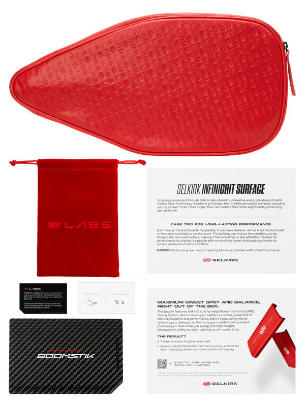 Selkirk’s MOI Tuning System is an overall design approach that includes a semi-permanent perimeter weighting solution that balances mass distribution with precision-engineered weights clamped to the edge guard. By putting the weight exactly where we want it — shifting mass toward the outer regions of the paddle and increasing the moment of inertia — it stabilizes the paddle during off-center hits. The result is clear: a larger and more forgiving sweet spot to help you get more balls over the net. The balanced weight distribution means your paddle won’t feel too top-heavy or too light — giving you better control and comfort during play.